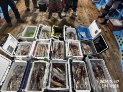 반갑습니다. 매일호 황선장입니다.봄도다리 2월1일 일요일부터 정상출조합니다.작년 첫출조때 조황사진 참고하시라고 올립니다.도다리는 푸짐한 회밥상 선상만찬으로 준비해드립니다.왕오징어 금요일 기상좋습니다!한마리한마리 씨알이 팔뚝이라 손맛좋습니다~왕오징어 금요일 자리여유 많고,*봄도다리 일요일1자리가능합니다.도다리 월화수 쭉 자리여유 많습니다~*왕오징어 이번주 금요일 / 토요일 예약가능두 어종 모두 많은 관심부탁드립니다^ㅡ^감사합니다.※먼바다왕오징어 출조안내*선비12만원*다단5단까지*추30-50,텐야100-150g*합사1호*자리는 추첨※봄도다리 출조안내*선비7만원*미끼채비전부제공*선상회만찬제공※출항일정&예약현황01/30